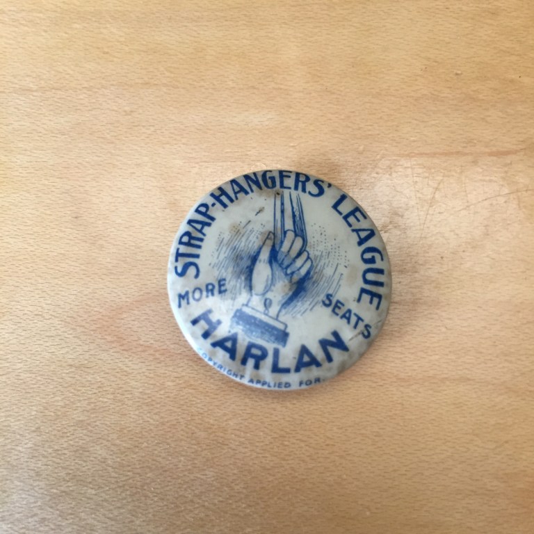 I don’t have a Pullman-era button (yet) but this from the Strap Hangers’ League from 1910 shows a unity around transit in Harlan, Iowa. Pullman car drivers refused to drive Pullman-made vehicles while the factory workers were on strike in 1894, something that served as a boiling over point for the strike efforts.