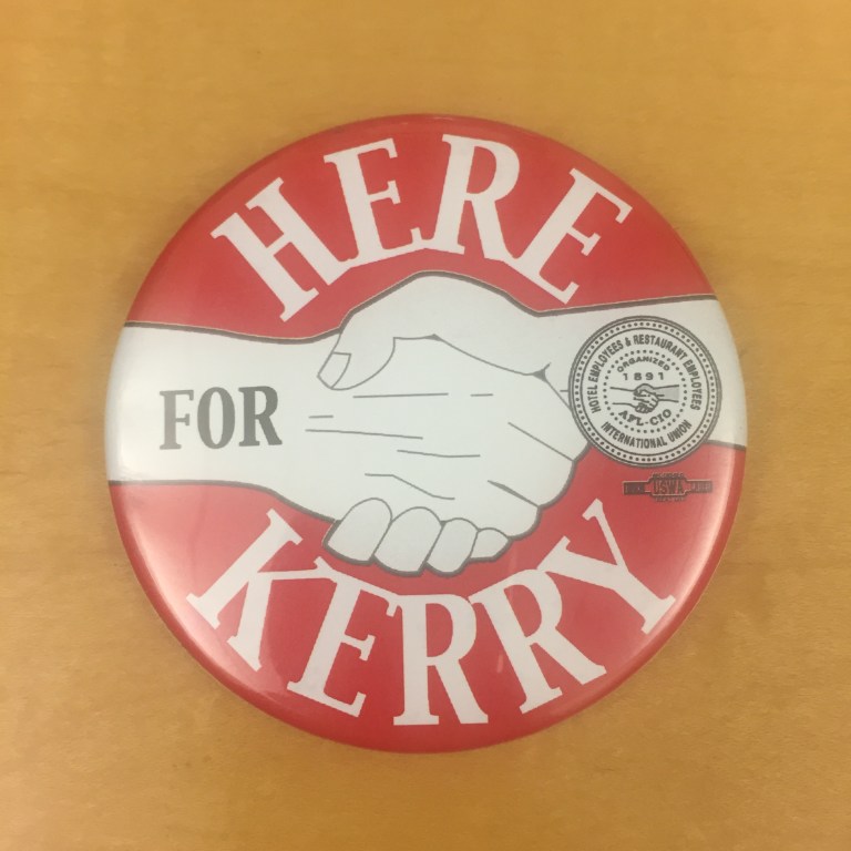 October 26, 2016 HERE for Kerry Before uniting with UNITE, HERE represented hotel and restaurant workers. They came out in support of John Kerry in the 2004 Democratic primary. Share this: Share on X (Opens in new window) X Share on Facebook (Opens in new window) Facebook Like Loading... Related